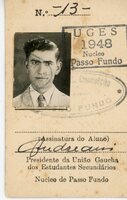 Carteirinha da União Gaúcha dos Estudantes Secundários Carteirinha de Leonildo Duda, aluno do Ginásio Nossa Senhora da Conceição, da União Gaúcha dos Estudantes Secundários. -
