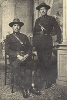 Retrato de Theodoro de Moraes Silveira e Ulysses Rodrigues Nesta foto posada em estúdio, vê-se, sentado, o Tenente-coronel Theodoro de Moraes Silveira, comandante interino da Brigada do Norte, e, apoiado na balaustrada, o Capitão Ulysses Rodrigues, secretário da mesma Brigada. -