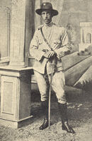Retrato do Capitão Luiz Magalhães O Capitão Luiz Magalhães posa para a foto em estúdio, apoiado em sua espada. -