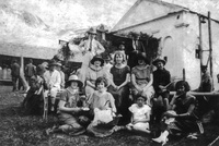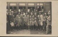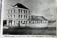 Contingente do Corpo Provisório Parte do contignete do Corpo Provisório em veículo motorizado defronte à Intendência Municipal (atual Museu Histórico Regional), pronto para deslocar-se às linhas de defesa da cidade, durante o cerco à cidade de Passo Fundo, na Revolução de 1923. -