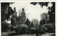 Praça Marechal Floriano Vista da Praça Marechal Floriano, vendo-se, ao fundo, a Catedral de Passo Fundo, Edifício Serrador e a loja Parque Elétrico. -
