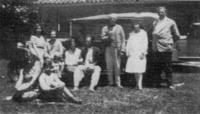 Família de José Bortoletti Em pé, da esquerda para a direita: Guerino “Guéra” (filho), Job (filho), Francisco ”Chico” (filho), Antônio “Tóni” (filho), Genuíno “Títio” (filho), Adolfo Rodrigues (genro, marido de Rosa), Arturo Piccini (genro, marido de Tereza) e Alberto Flores “Cotó” (genro, marido de Maria); Sentadas, da esquerda para direita: Rosa Maria (nora, esposa de Francisco), Júlia (nora, esposa de Guerino), Maria Endrigo Bortoletti, a “Nona”, matriarca, viúva de José), Tereza (filha), Maria “Táta” (filha), Angelina (filha) e Rosa ( filha). Outros dois filhos, de nomes Ídia e Rogério, não aparecem na foto. (Ela residia em Porto Alegre e ele em Marau). Não sabemos ao certo a origem italiana dessa família. Parece que se fixaram em Guaporé/Marau. Posteriormente se mudaram para Passo Fundo. A Nona residia na Rua General Canabarro, no trecho onde passavam os trilhos e havia antigamente as casas de banho. Depois se fixou – como a maioria dos filhos – na Vila Annes. Acreditamos que todos eles (com exceção de Ídia e Rogério) estão sepultados no Cemitério da Vera Cruz. Certamente também existem registros de óbito no cartório. No jazigo da família Bortoletti (grafado “Bortollete”), estão fixadas as fotografias do Nono, da Nona e dos filhos Job, Angelina e Rosa, sem nenhuma inscrição. No túmulo da família Flores, os netos (filhos de José Carlos Flores, irmão de Olga Damian), ocuparam o espaço e suprimiram os nomes dos avós, Alberto e Maria, do tio-avô Antônio e do tio Nilzo. Mantiveram a inscrição do pai José Carlos e da tia Nilza Flores Silveira, mas a data de nascimento de Nilza está equivocada. Esses túmulos estão localizados na Quadra 14. Tratava-se de uma família de origem humilde, composta por agricultores, operários e pequenos empreendedores. Eram getulistas ferrenhos. Angelina mantinha retratos de Getúlio e Jango na sala de sua casa, na Rua Lava-Pés. Ela era casada (ou mantinha união estável) com Policarpo de Oliveira, o “Rico”, peão do advogado Moisés Salti. Tiveram uma filha de nome Sueli. A foto é da primeira metade dos anos 40. -
