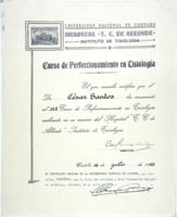 Estagiou no Serviço da Cátedra de Tisiologia de Buenos Aires, bem como no Grande Serviço de Raios X e Cancerologia do professor Darienso, em Córdoba. Estagiou também, durante quatro anos nos Serviços de Radiologia e Eletrocardia do Serviço do professor Tomás Morais. Foi professor de diversos cursos oficiais de aperfeiçoamento. Realizou cursos de aperfeiçoamento em Técnica Cirúrgica, Pediatria, Especialização em Tuberculose, Parasitologia Especializada e Tisiologia. Antes, em 1944, havia criado a Clínica César Santos, que realizava exames de radiologia, radiografias, radioterapia e abreugrafia.