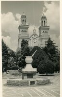 Catedral de Passo Fundo Vista do cruzamento da Rua Moron e da Avenida General Netto, na década de 1940. Vê-se, em primeiro plano, a Livraria Progresso e a Catedral, ainda em construção. -