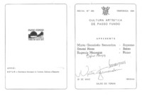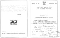 - O acervo é composto por parte da documentação produzida e recebida pela Cultura Artística de Passo Fundo desde 1953. No conjunto estão programas de recitais, notas, recibos, correspondências e matérias publicadas nos jornais locais sobre as atividades da entidade. Mantida a organização feita pelo Museu Histórico Regional, tipologicamente, por ordem cronológica.