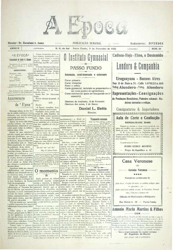 Acervo protegido pela Lei 9.610/98. Proibida a reprodução para fins comerciais sem a autorização dos detentores legais do direito. A reutilização deste conteúdo é livre e gratuita devendo ser mencionado o IHPF como fonte de referência, na seguinte forma: Acervo Instituto Histórico de Passo Fundo. Se o item pertencer a alguma coleção/fundo, o nome também deve ser citado.