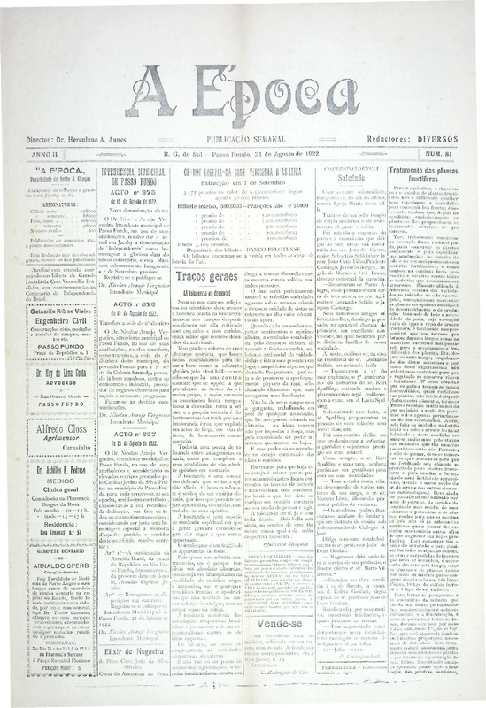 Acervo protegido pela Lei 9.610/98. Proibida a reprodução para fins comerciais sem a autorização dos detentores legais do direito. A reutilização deste conteúdo é livre e gratuita devendo ser mencionado o IHPF como fonte de referência, na seguinte forma: Acervo Instituto Histórico de Passo Fundo. Se o item pertencer a alguma coleção/fundo, o nome também deve ser citado.