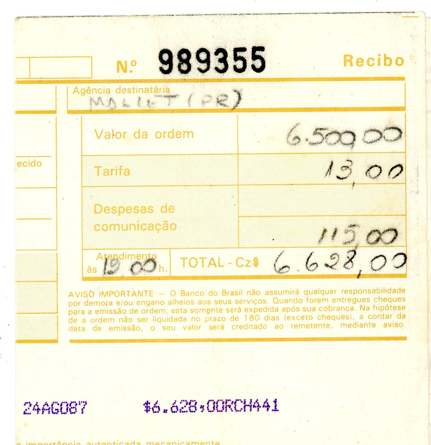 Ordem de Pagamento emitida pelo Banco do Brasil