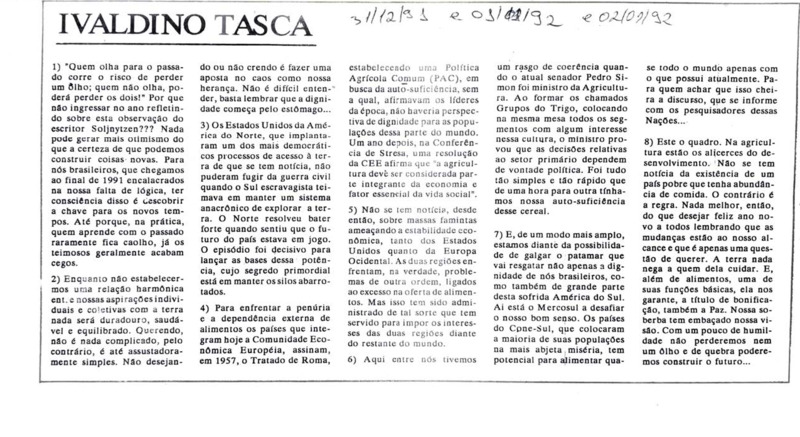 Coleção de artigos de jornais O Nacional 1992, parte 1