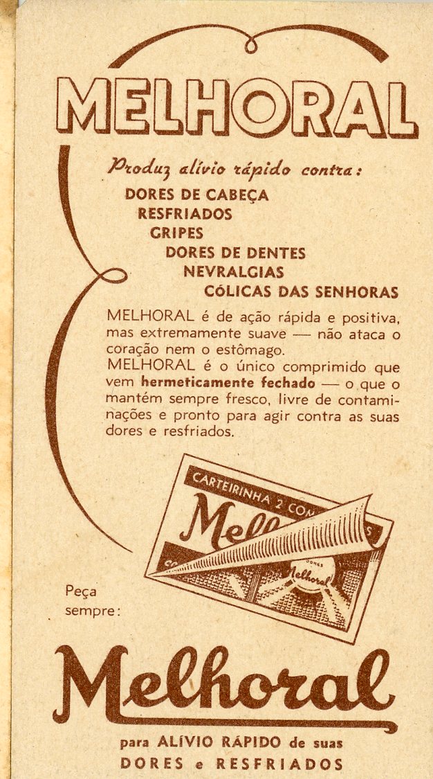 Melhoral produz alívio rápido contra dores de cabeça, resfriados, gripes, dores de dente, nevralgias, cólicas das senhoras