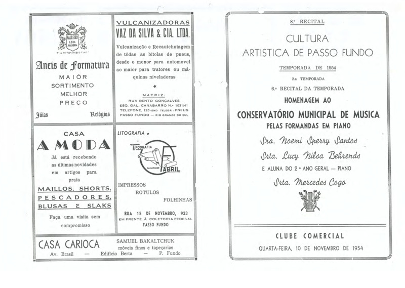 E alunas do Conservatório Municipal, Piano Lucy Nilsa Behrends e Piano Mercedes Cogo