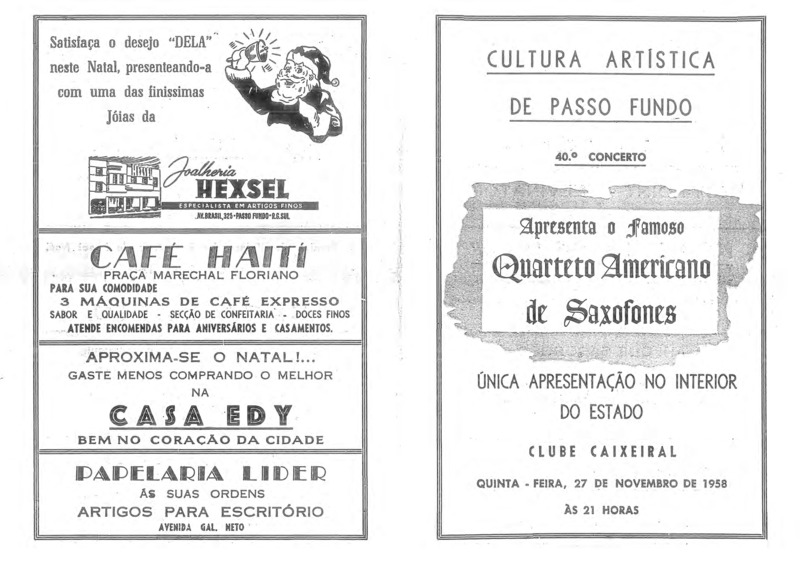 Quarteto Americano de Saxofones - Sax sopr. Eduardo Gutierrez; sax contr. Bolivar Gutierrez; sax tenor Horst Prentkl; sax bar. Hector Gut