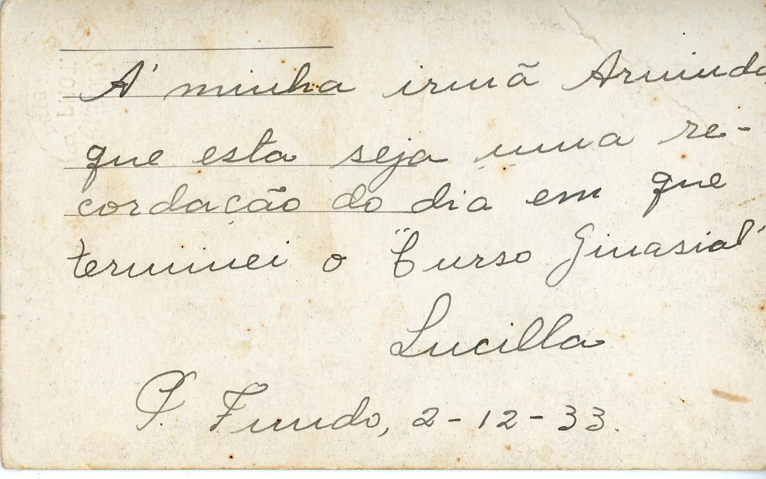 Acervo protegido pela Lei 9.610/98. Proibida a reprodução para fins comerciais sem a autorização dos detentores legais do direito. A reutilização deste conteúdo é livre e gratuita devendo ser mencionado o IHPF como fonte de referência, na seguinte forma: Acervo Instituto Histórico de Passo Fundo. Se o item pertencer a alguma coleção/fundo, o nome também deve ser citado.