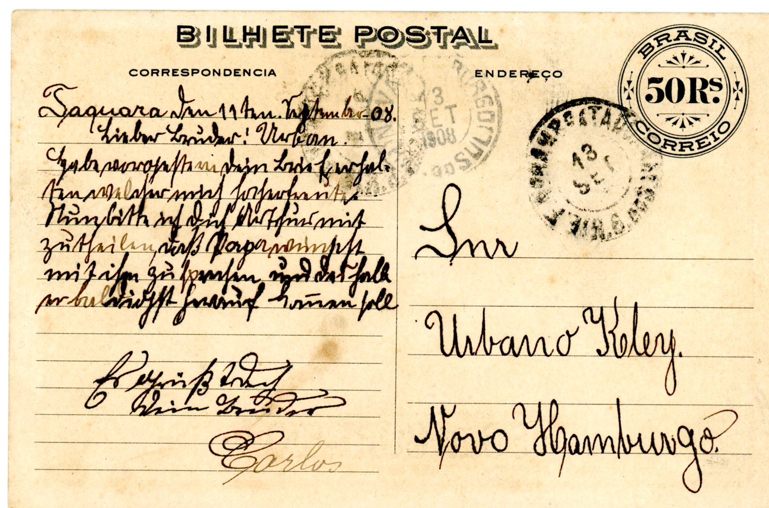 Cartão em comemoração ao Centenário da Abertura dos Portos 1808-1908 -