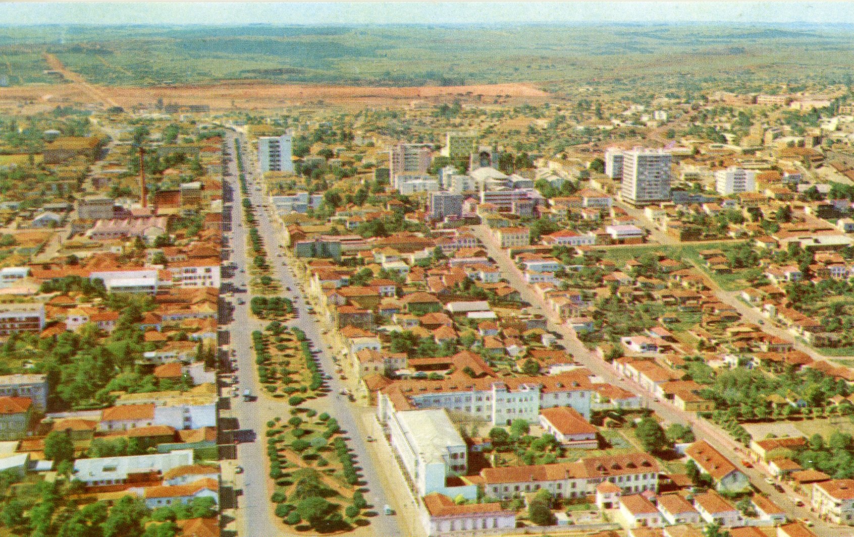 Vista aérea de Passo Fundo, na perspectiva do Boqueirão para o Centro, tendo a Avenida Brasil como destaque.