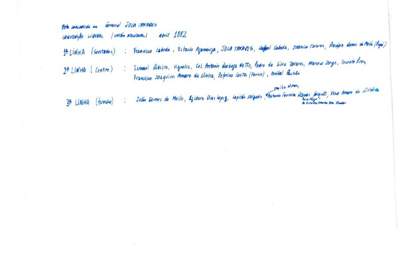 Foto concedida ao General Joca Tavares, na Convenção Liberal (União Nacional), em abril de 1882.