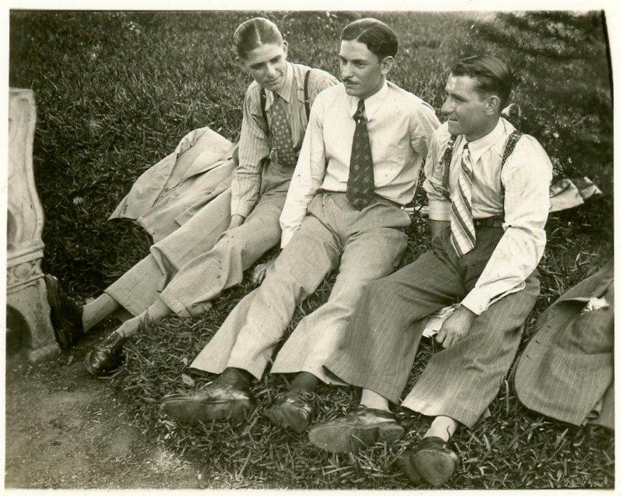 Deoclides Czamanski e dois amigos na Praça Marechal Floriano, década de 1930.