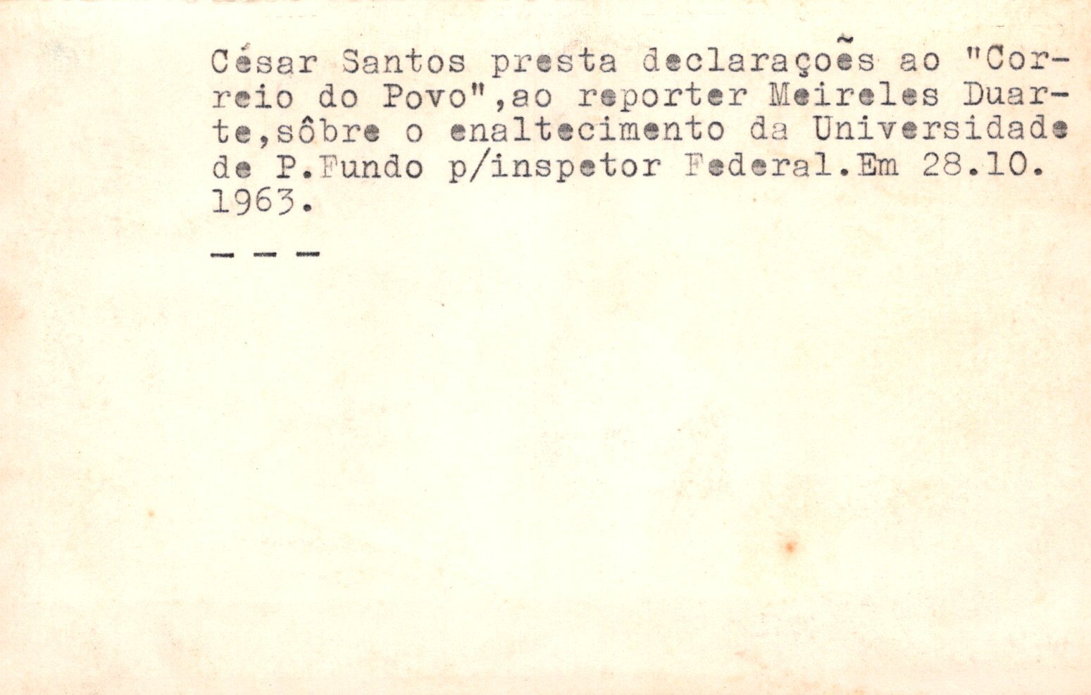 Acervo protegido pela Lei 9.610/98. Proibida a reprodução para fins comerciais sem a autorização dos detentores legais do direito. A reutilização deste conteúdo é livre e gratuita devendo ser mencionado o IHPF como fonte de referência, na seguinte forma: Acervo Instituto Histórico de Passo Fundo. Se o item pertencer a alguma coleção/fundo, o nome também deve ser citado.