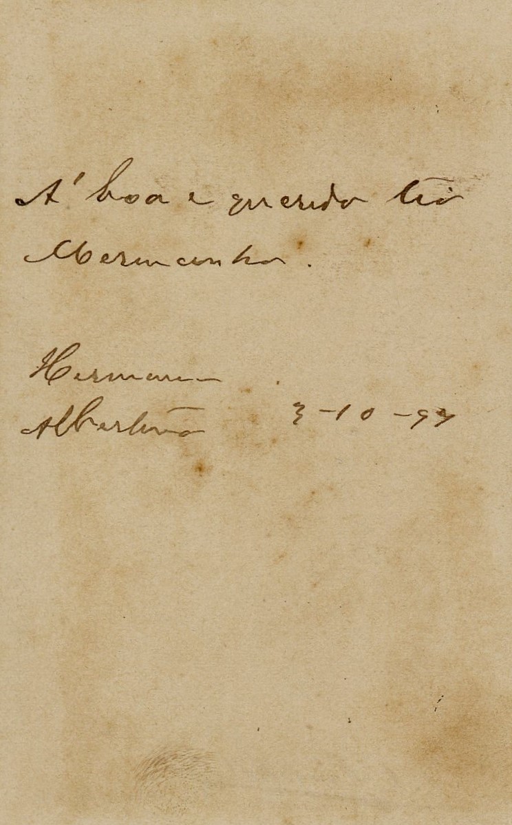 No verso consta a inscrição "À boa e querida tia