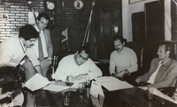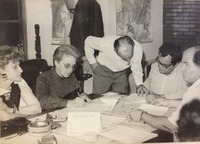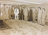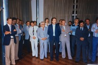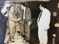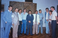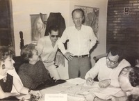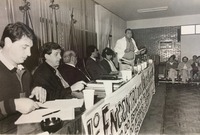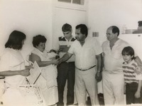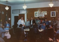 Reunião de pessoas na sala da residência de Carrion. O mandado do ex-prefeito Fernando Machado Carrion na Prefeitura de Passo Fundo ocorreu de 31 de janeiro de 1983 a 31 de dezembro de 1988.