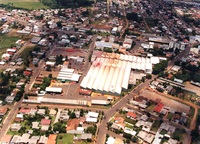 Vista Aérea do Centro de Passo Fundo Vista Aérea da região central de Passo Fundo, vendo-se, no canto inferior direito, a chaminé da Brahma e a rua Bento Gonçalves. -