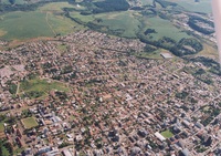 Vista aérea da RS 153 Vista aérea da RS 153, saída para Ernestina, vendo-se a fábrica de óleo Bertol, o Instituto Marcelino Champagnat e o Loteamento Jardim América. -