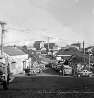 Carros de Praça na Praça Marechal Floriano Praça Marechal Floriano, na perspectiva da Rua Independência, vendo-se a caixa d´agua e a fileira de carros de praça. -