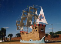 Monumento da Caravela Localizado na Praça Portugal (no trevo de acesso à perimetral sul e à RS-153), o monumento da caravela, em homenagem aos 500 anos do descobrimento do Brasil, foi inaugurado em 26 de abril de 2000, em um evento que também teve a celebração de uma missa campal no local, em homenagem a primeira missa realizada no Brasil, em 26 de abril de 1500. Proposto em 1998, pelo vereador Edson Nunes, em homenagem aos 500 anos do descobrimento do Brasil (processo nº 349), que foi aprovada pelo Legislativo municipal e sancionada pelo prefeito Júlio Teixeira (Lei nº 3393/98, de 11 de novembro de 1998). -