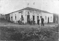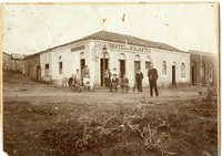 Hotel dos Viajantes Hotel dos Viajantes, localizado na esquina da Rua do Commercio (atual Avenida Brasil), com Avenida General Netto. Propriedade do imigrante espanhol Eduardo Barreior Gomes, o primeiro a frente da foto. Ao fundo, na porta, sua esposa Antonia Vieira, com uma criança no colo. -