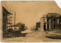 Rua Bento Gonçalves Cartão Postal Livraria Nacional Série de 1928 nº 13 Rua Bento Gonçalves esquina com a Rua Independência com vista do edifico do Banco Nacional, da Casa Mioto em construção -