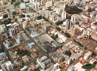 Vista aérea do Centro de Passo Fundo Vista aérea da área central de Passo Fundo, vendo-se a partir da esquerda, o estacionamento do Bella Citta Shopping Center, a Praça Marechal Floriano e a antiga fábrica da Brahma. -