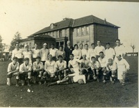 Time e alunos do Instituto Ginasial Time de futebol do Instituto Ginasial, na década de 1930. Identificados, da esquerda para a direita: Verdi De Cesaro e William Richard Schisler. -