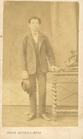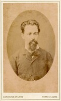 Álbum de Antonio de Vasconcellos O "Álbum de Antonio de Vasconcellos" constituí-se como um álbum com 163 cartes de visite* produzidos entre a década de 1860 e o final do século XIX. O item possuí capa de couro verde, adornado com as iniciais "A de V", referindo-se ao comerciante português estabelecido no Rio Grande do Sul, Antonio da Silva Vasconcellos (1838-1916). As imagens presentes no Álbum retratam membros das famílias Borges Fortes, Vasconcellos, Prates e Castilhos, além de colaterais e amigos de Antonio de Vasconcellos, tendo sido produzidas por fotógrafos estabelecidos no Rio de Janeiro, Portugal, Porto Alegre, São Gabriel, Santana do Livramento, Bagé, Montevideu e outras localidades. *Os cartes de visite apresentavam uma fotografia de cerca de 9,5 x 6 cm montada sobre um cartão rígido de cerca de 10 x 6,5 cm. A copiagem era feita geralmente com a técnica de impressão em albumina. -