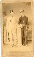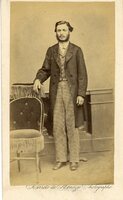 Retrato coletivo de figuras masculinas No retrato, são identificadas duas pessoas. Em pé, ao centro, encontra-se Fidélis Raimundo da Silva, conhecido pelo apelido Gueco. Era filho de João Raimundo da Silva e Cândida Prates da Silva, e irmão de Tito Prates da Silva. Sentado à direita, está Antônio de Vasconcelos (vovô Vasconcelos). -
