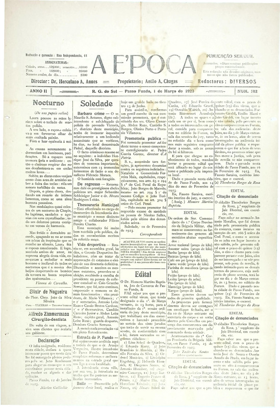 Acervo protegido pela Lei 9.610/98. Proibida a reprodução para fins comerciais sem a autorização dos detentores legais do direito. A reutilização deste conteúdo é livre e gratuita devendo ser mencionado o IHPF como fonte de referência, na seguinte forma: Acervo Instituto Histórico de Passo Fundo. Se o item pertencer a alguma coleção/fundo, o nome também deve ser citado.