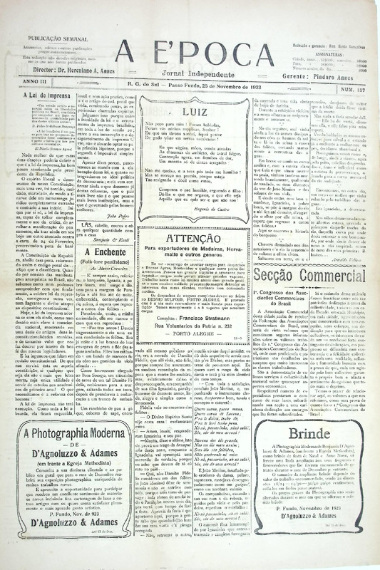 Acervo protegido pela Lei 9.610/98. Proibida a reprodução para fins comerciais sem a autorização dos detentores legais do direito. A reutilização deste conteúdo é livre e gratuita devendo ser mencionado o IHPF como fonte de referência, na seguinte forma: Acervo Instituto Histórico de Passo Fundo. Se o item pertencer a alguma coleção/fundo, o nome também deve ser citado.