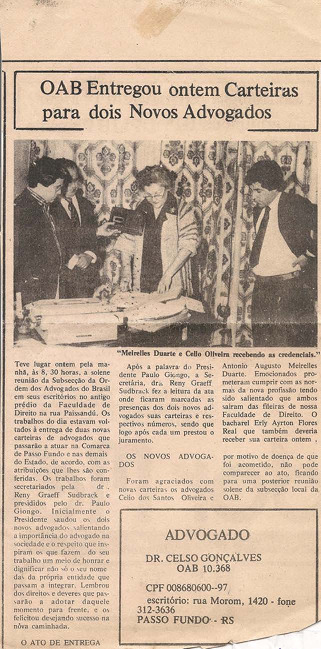 Acervo protegido pela Lei 9.610/98. Proibida a reprodução para fins comerciais sem a autorização dos detentores legais do direito. A reutilização deste conteúdo é livre e gratuita devendo ser mencionado o IHPF como fonte de referência, na seguinte forma: Acervo Instituto Histórico de Passo Fundo. Se o item pertencer a alguma coleção/fundo, o nome também deve ser citado.