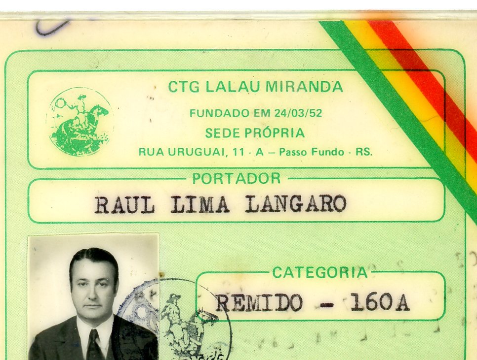 Carteira de Sócio Remido do CTG Lalau Miranda