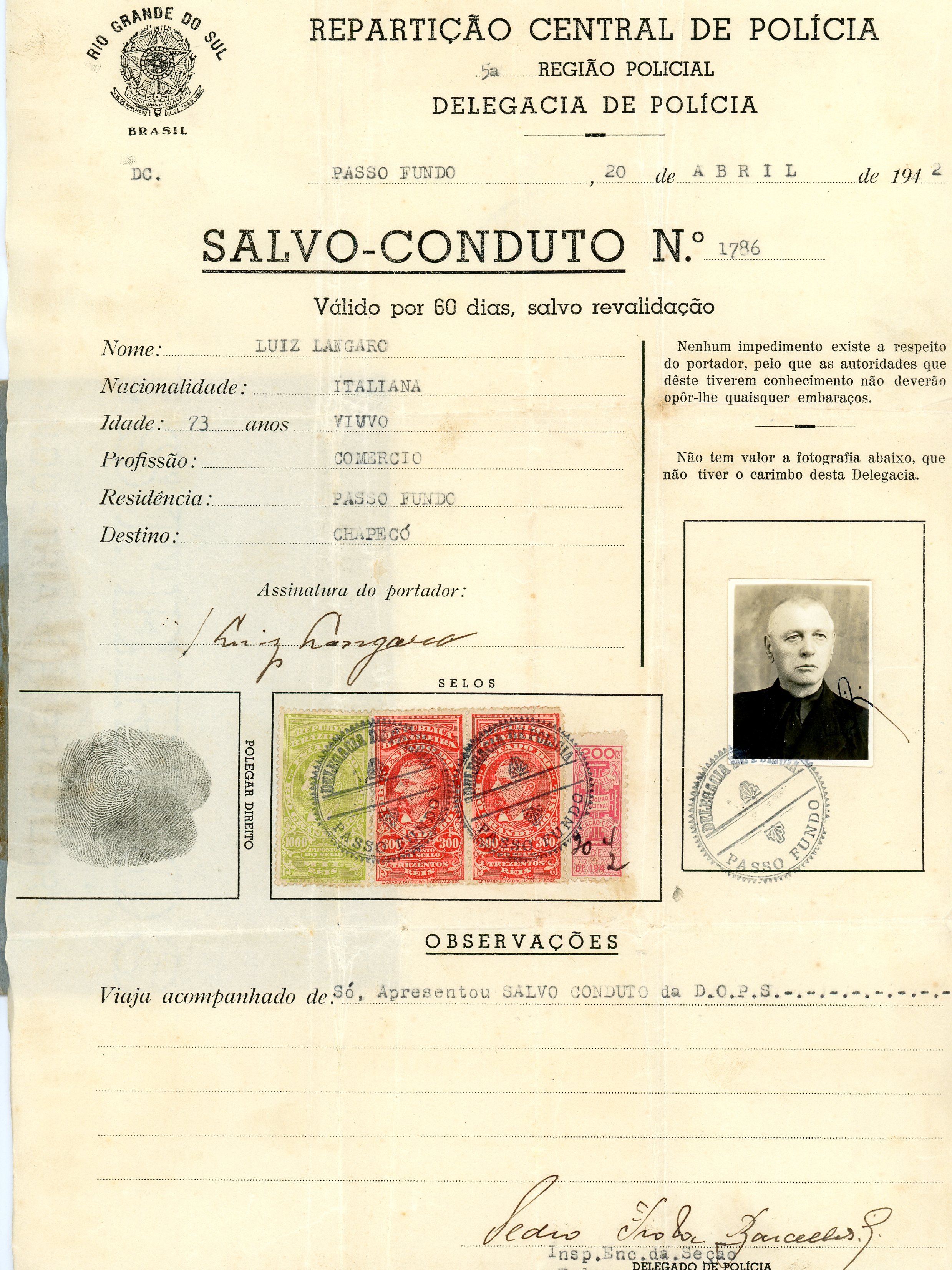 Salvo Conduto civil de Luiz Langaro