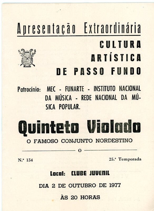 Acervo protegido pela Lei 9.610/98. Proibida a reprodução para fins comerciais sem a autorização dos detentores legais do direito. A reutilização deste conteúdo é livre e gratuita devendo ser mencionado o IHPF como fonte de referência, na seguinte forma: Acervo Instituto Histórico de Passo Fundo. Se o item pertencer a alguma coleção/fundo, o nome também deve ser citado.