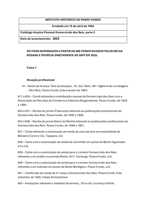 Catálogo Gomercindo dos Reis, Arquivo Pessoal parte 02