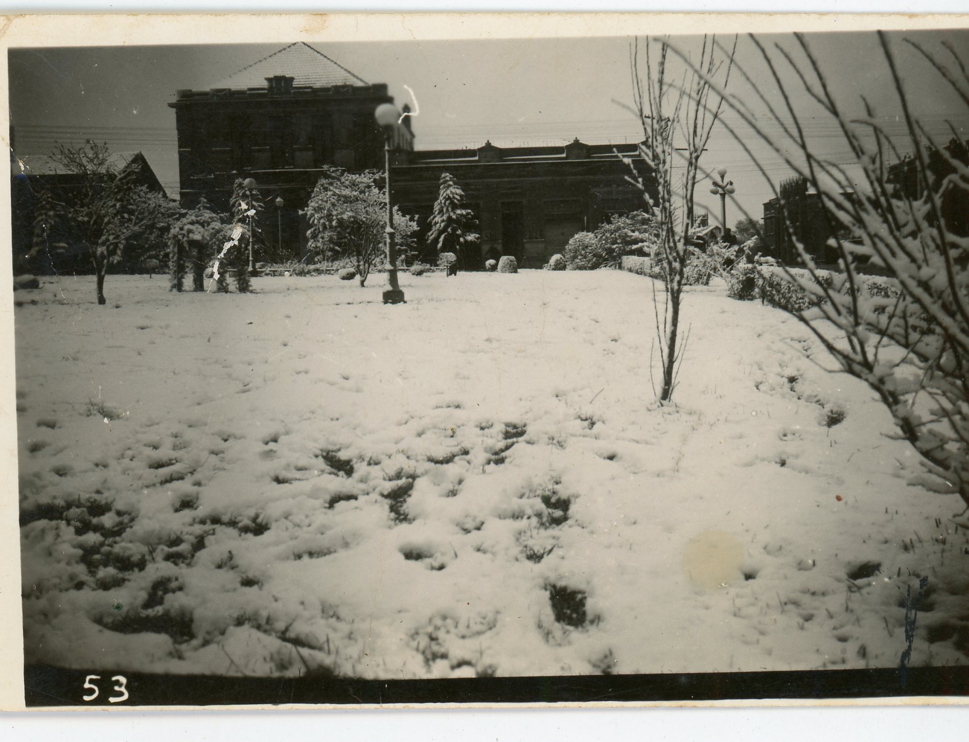 Praça Marechal Floriano na nevasca de 1942, vendo-se ao fundo o Edifício kieling
