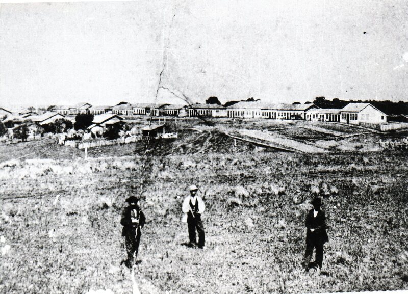 Vista Panorâmica da Avenida Brasil no cruzamento da rua dez de abril vendo-se o muro, chamado de Taipa, no local onde hoje está o colégio Joaquim Fagundes dos Reis
