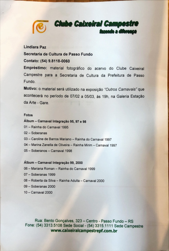 Motivo: o material será utilizado na exposição "Outros Carnavais " que