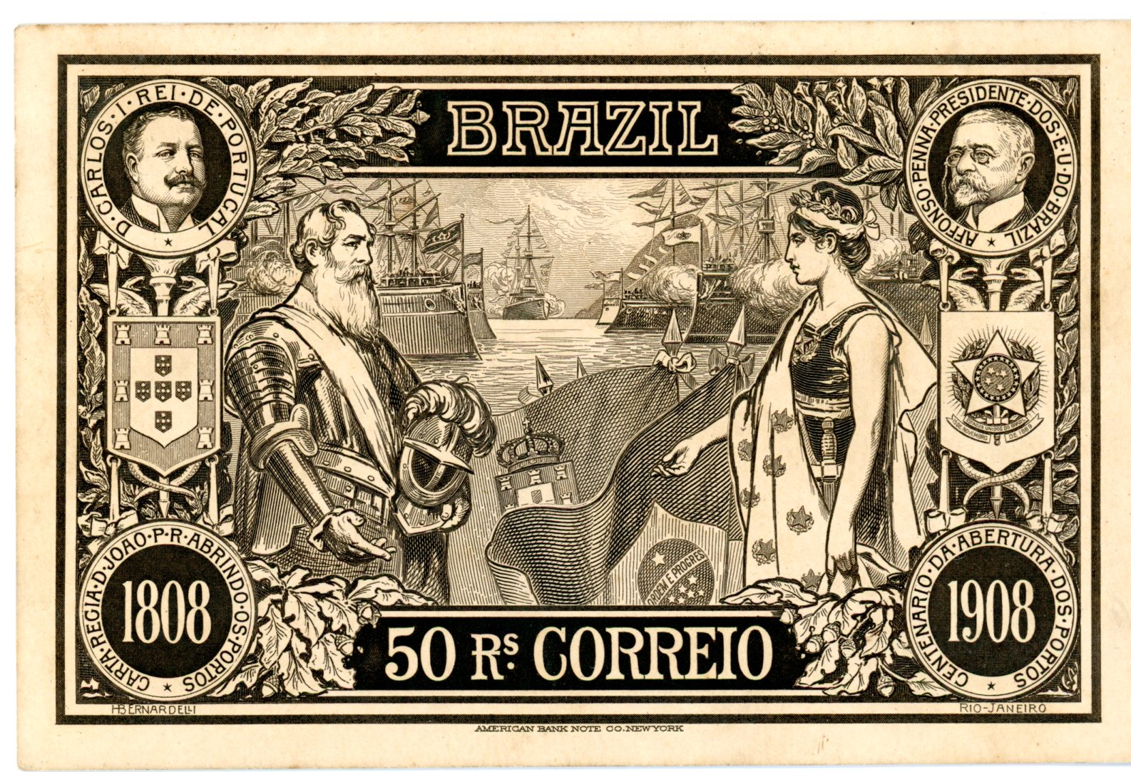 Cartão em comemoração ao Centenário da Abertura dos Portos 1808-1908 -