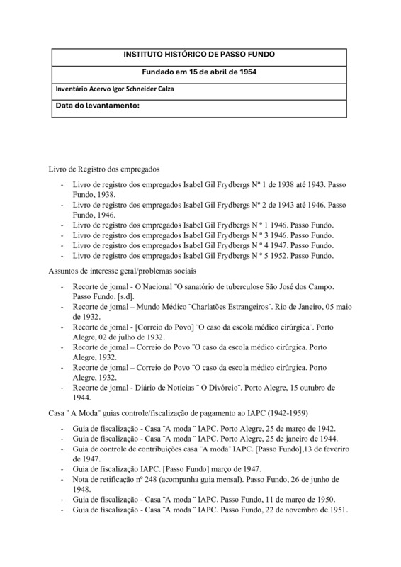 Acervo protegido pela Lei 9.610/98. Proibida a reprodução para fins comerciais sem a autorização dos detentores legais do direito. A reutilização deste conteúdo é livre e gratuita devendo ser mencionado o IHPF como fonte de referência, na seguinte forma: Acervo Instituto Histórico de Passo Fundo. Se o item pertencer a alguma coleção/fundo, o nome também deve ser citado.
