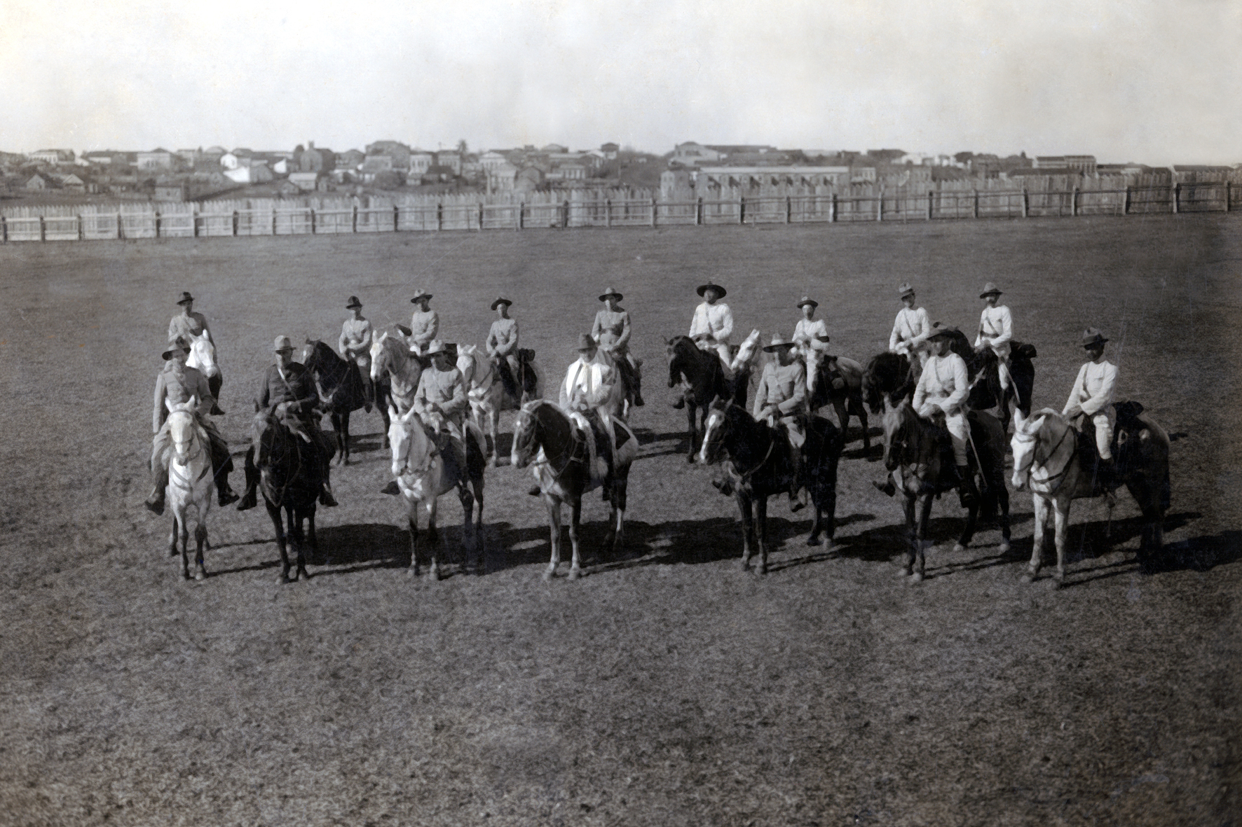 A oficialidade do Corpo Provisório da Brigada Militar junto ao intendente Nicolau Araujo Vergueiro, posicionado ao centro, em vestes civis, durante a Revolução de 1923.