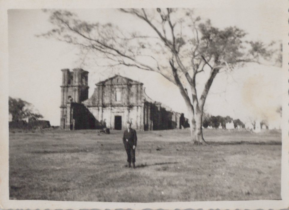 Retrato de figura masculina não identificada; em frente às Ruinas de São Miguel.