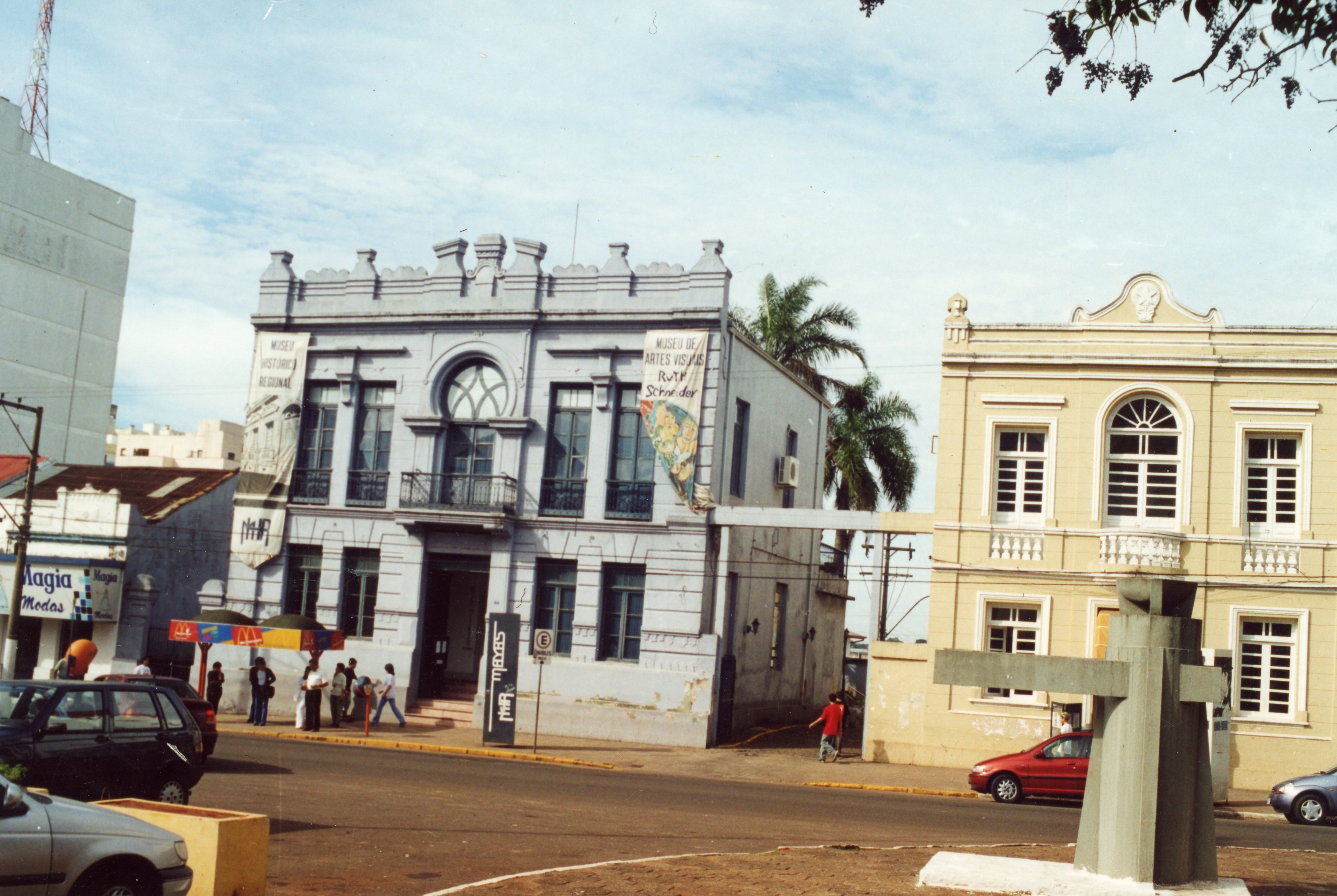 Vista do prédio do Museu de Artes Visuais Ruth Schneider e do Museu Histórico Regional, vendo-se a esquerda o prédio do Teatro Municipal Múcio de Castro.