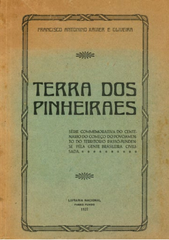 OLIVEIRA, Francisco A X.; Terra dos Pinheirais -Passo Fundo: Livraria Nacional, 1927, 62 páginas, Transcrito